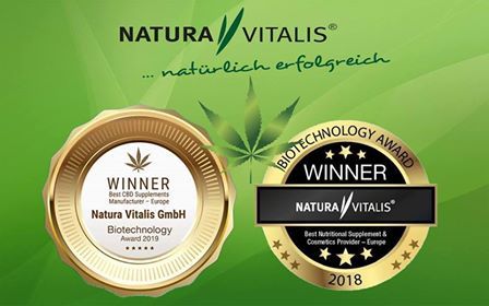 2019 bekam Natura Vitalis den Award als bester Hersteller von CBD Produkten in Europa.